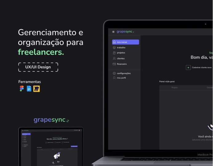 Design para ferramenta de gerenciamento de projeto para freelancers.
